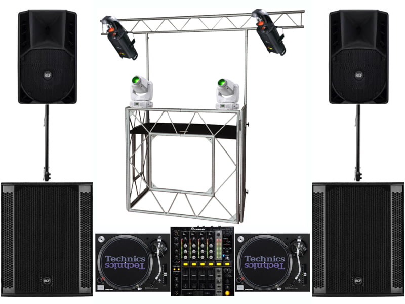 Includes 2 x speakers, 2 x subwoofers, 2 x 1210’s, 1 x DJM700, 1 x DJ booth, 2 x scanners and 2 x moving heads
