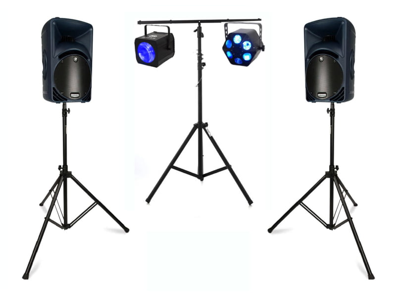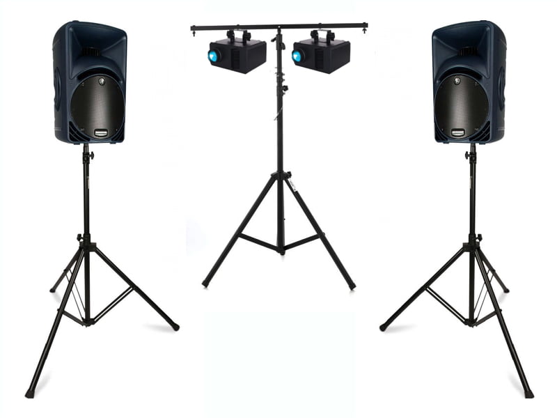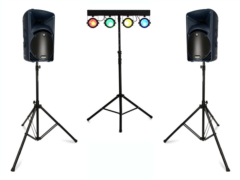 Includes 2 x speakers, 4 x spotlights and 1 x mixer for connection to phone, laptop, tablet etc