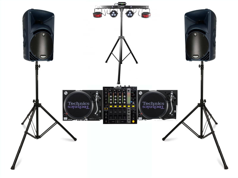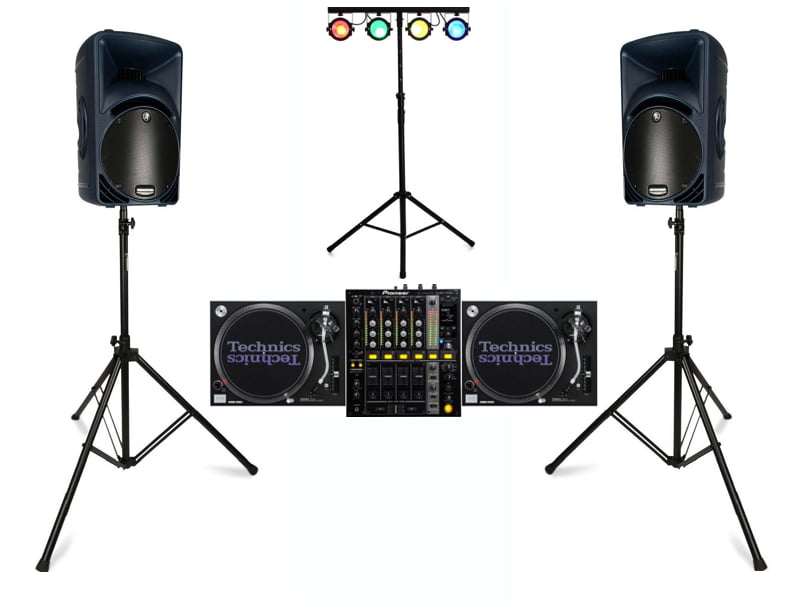 Includes 2 x speakers, 2 x Technics 1210’s and 1 x Pioneer DJM700 mixer and 4 x spotlights